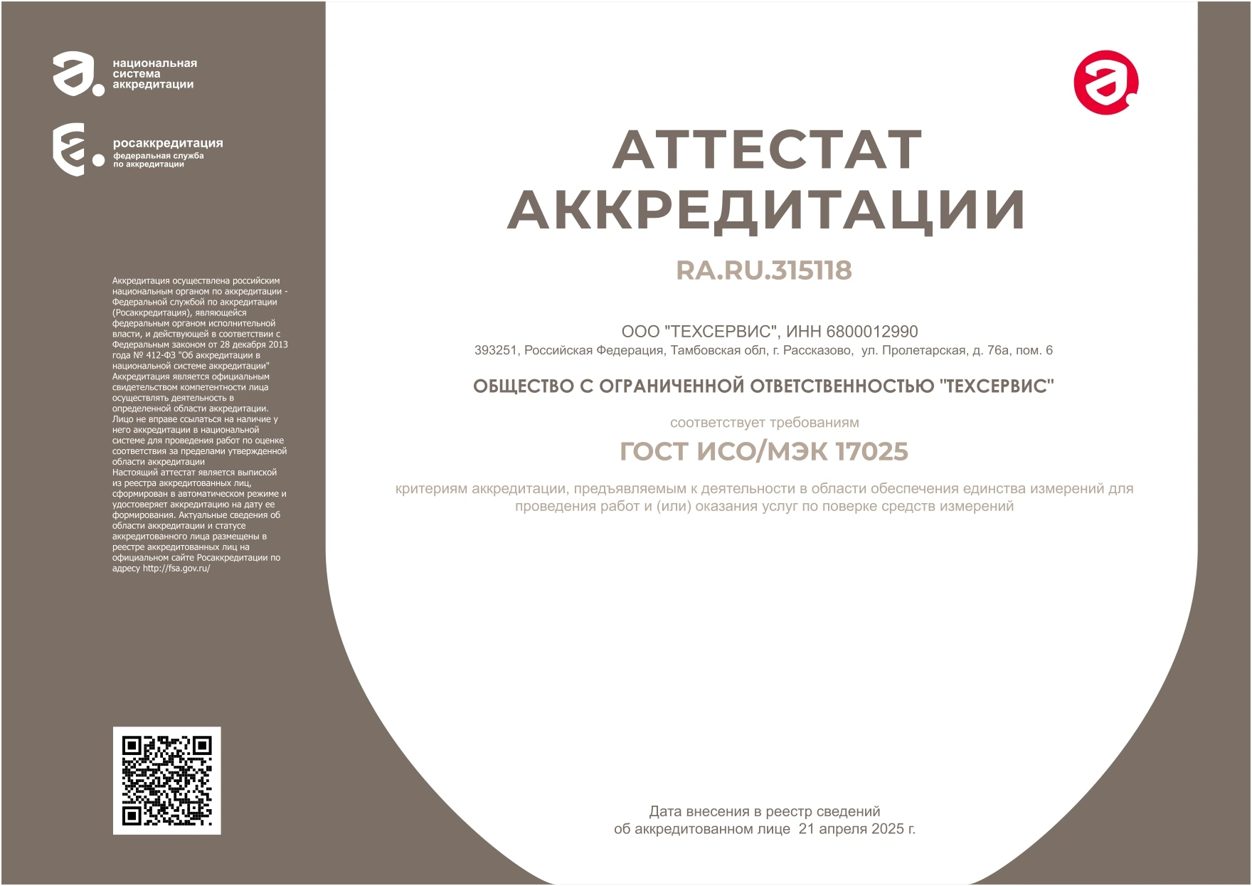 Это главный документ нашей организации. Мы получили право официально работать со счетчиками. Изучите нашу карточку аккредитованного лица на портале Федеральной службы по аккредитации — «Росаккредитация»
